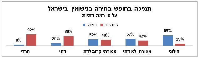 תמיכה בחופש בחירה בנישואים בישראל על פי רמת דתיותתמיכה בחופש בחירה בנישואים בישראל על פי רמת דתיות